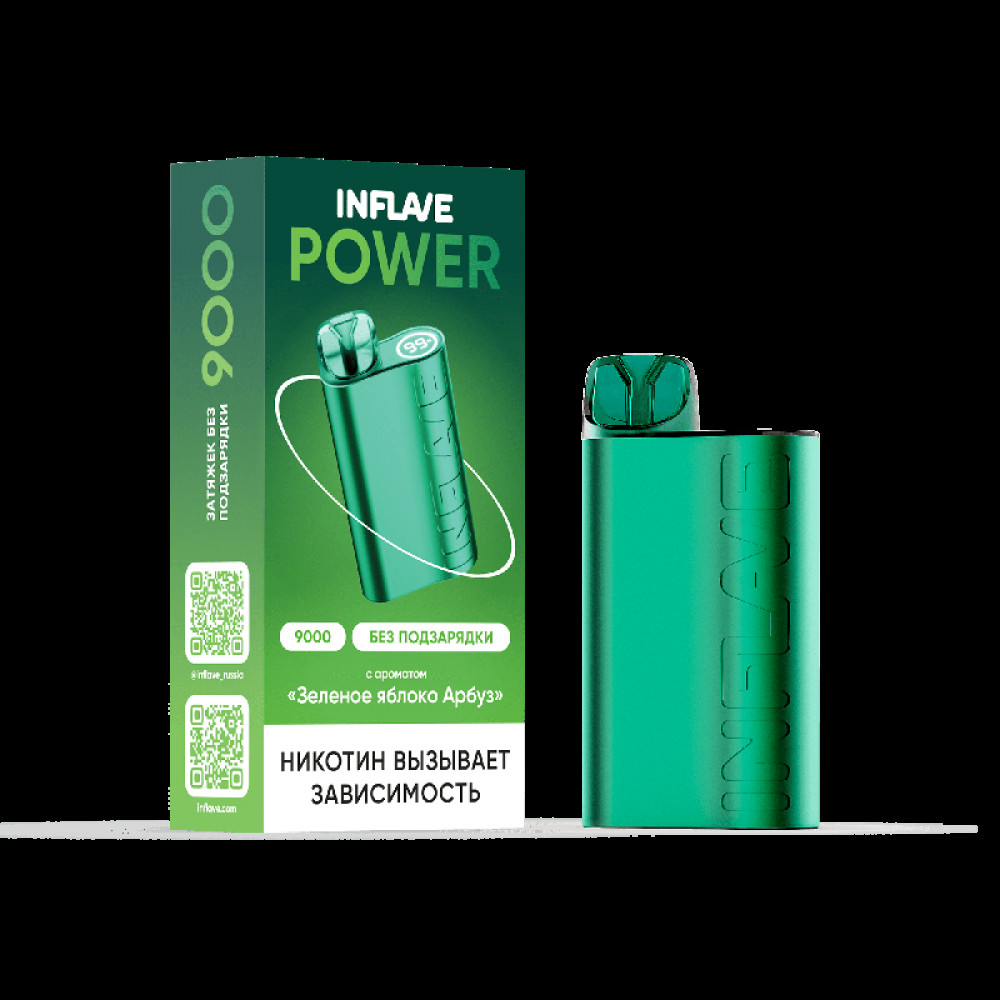 Электронная сигарета INFLAVE POWER 9000 затяжек Зеленое Яблоко Арбуз - купить в Железногорске