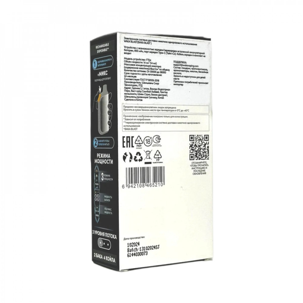 На складе Код товара: WAKA BLAST 38000 Hard - Виноград грейпфрут + лимонная содовая